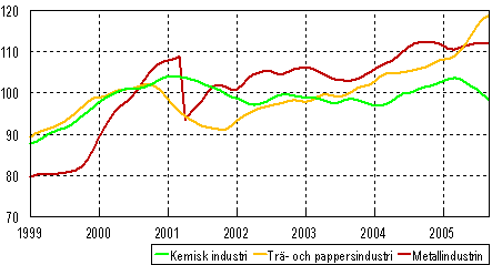 Trenden för industriproduktionen 1999-2005,