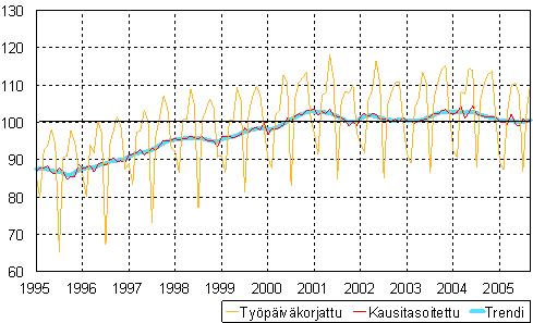 teollisuustuotannon volyymi-indeksi 1995 - 2005 syyskuu,