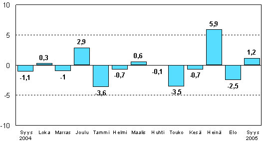 - Teollisuustuotannon kausitasoitettu muutosprosentti elokuu 2005 / syyskuu 2005 (31.10.2005)