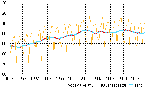teollisuustuotannon volyymi-indeksi 1995 - 2005 lokakuu,