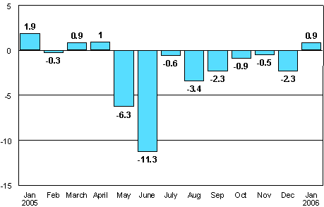 According to Statistics Finland, seasonally adjusted industrial output was 0.9 per cent higher in January 2006 than in January 2005. The downhill trend in industrial output that continued almost throughout last year seems to have come to an end.