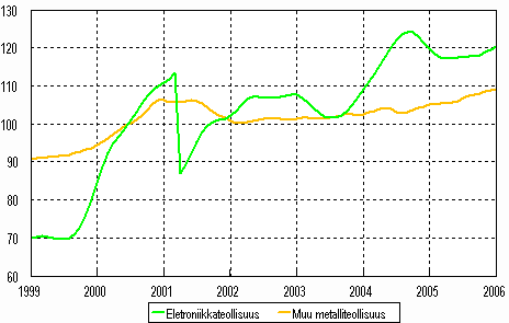 (Elektroniikkateollisuus ja muu metalliteollisuus), 2000=100