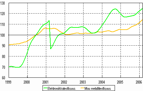 (Elektroniikkateollisuus ja muu metalliteollisuus), 2000=100