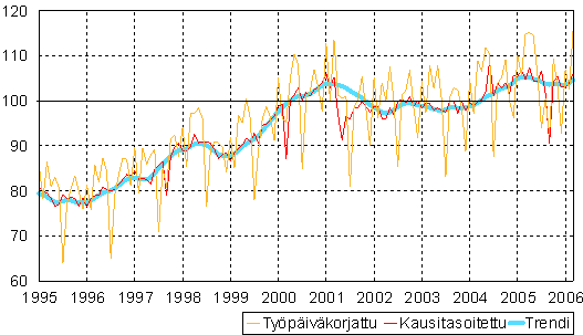 teollisuustuotannon volyymi-indeksi 1995 - 2006 maaliskuu,