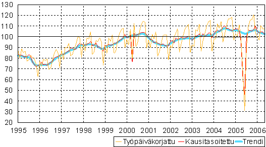 teollisuustuotannon volyymi-indeksi 1995 - 2006 toukokuu,
