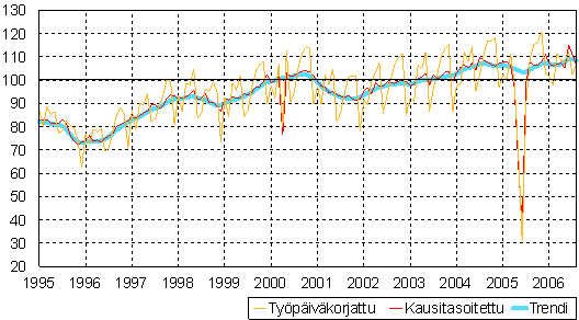 teollisuustuotannon volyymi-indeksi 1995 - 2006 elokuu,
