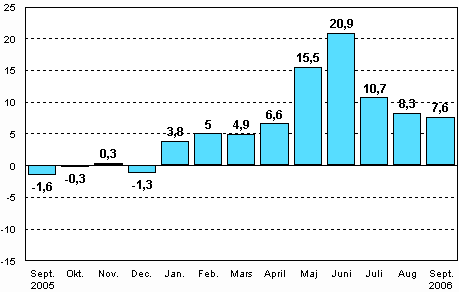 I september 2006 var den säsongrensade industriproduktionen enligt Statistikcentralen 7,6 procent större än i september 2005. Industriproduktionen har ökat kraftigt i början av året. Den varma och regnfattiga förhösten satte också fart på torvtäkten. Gruvdrift och utvinning av mineral ökade i september rentav med 68 procent från året innan. Under januari-september ökade den hela säsongrensade industriproduktionen med 9 procent från året innan.