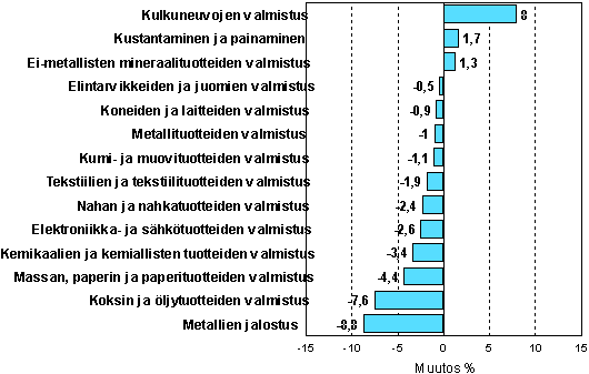 Teollisuustuotannon kausitasoitettu muutosprosentti
