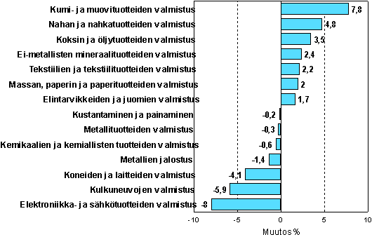 Teollisuustuotannon kausitasoitettu muutosprosentti syyskuu 2006 / lokakuu 2006