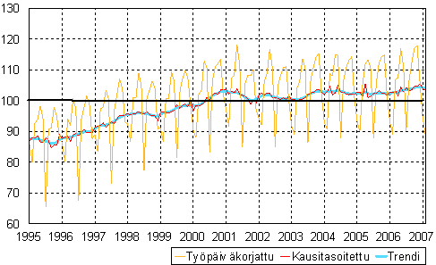 teollisuustuotannon volyymi-indeksi 1995 - 2007 helmikuu,