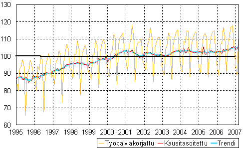 teollisuustuotannon volyymi-indeksi 1995 - 2007 maaliskuu,