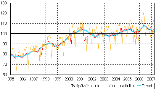 teollisuustuotannon volyymi-indeksi 1995 - 2007 huhtikuu,