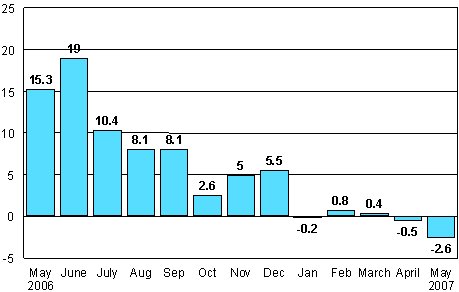 Source: Volume Index of Industrial Output 2007, May. Statistics Finland