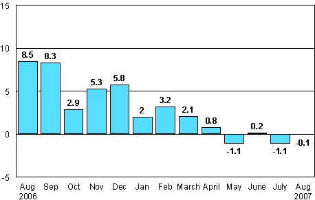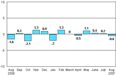 According to Statistics Finland, seasonally adjusted industrial output was 0.6 per cent lower in August 2007 than in July.