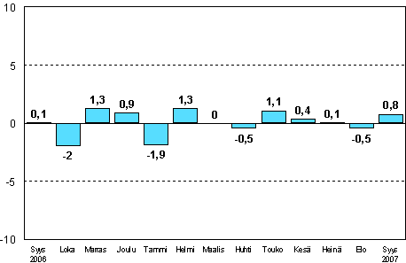- Teollisuustuotannon kausitasoitettu muutosprosentti elokuu 2007 / syyskuu 2007 (31.10.2007)