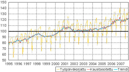teollisuustuotannon volyymi-indeksi 1995 - 2007 marraskuu,