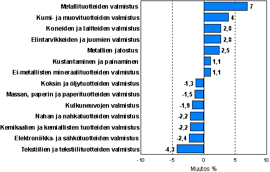 Teollisuustuotannon kausitasoitettu muutosprosentti