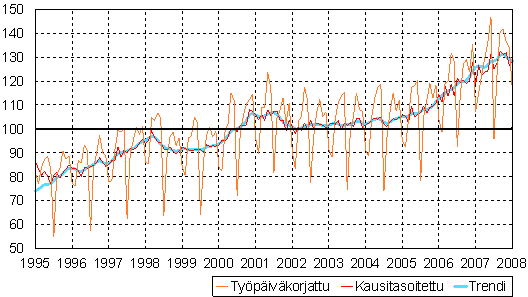 teollisuustuotannon volyymi-indeksi 1995 - 2008 tammikuu,