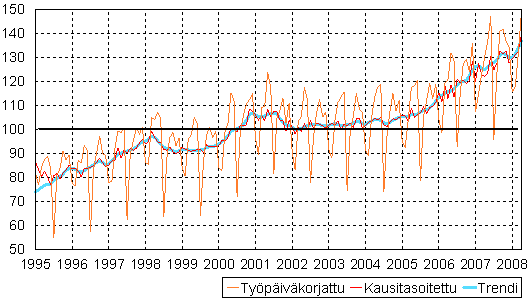 teollisuustuotannon volyymi-indeksi 1995 - 2008 huhtikuu,