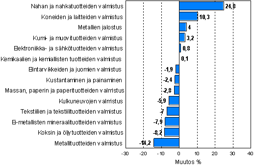 Teollisuustuotannon työpäiväkorjattu muutosprosentti elokuu 2007 / elokuu 2008