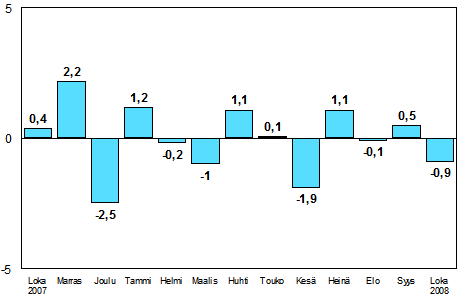 - Teollisuustuotannon kausitasoitettu muutosprosentti syyskuu 2008 / lokakuu 2008 (28.11.2008)
