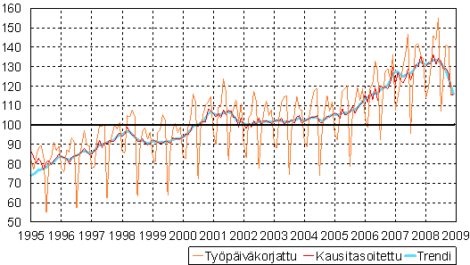 teollisuustuotannon volyymi-indeksi 1995 - 2008 joulukuu,