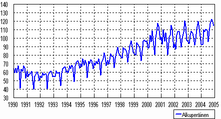 Teollisuustuotannon (CDE) alkuperäinen sarja 1990-2004, 2000=100