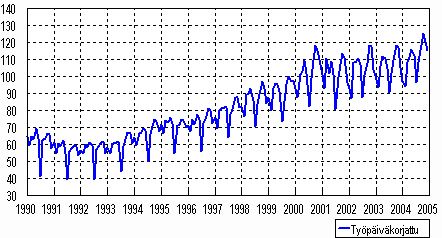 Teollisuustuotannon (CDE) työpäiväkorjattu sarja 1990-2004, 2000=100