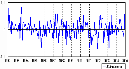 Teollisuustuotannon (CDE) jäännöstermi 1992-2004