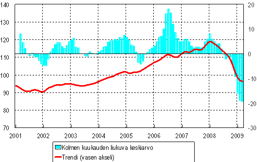 Vuoden 2009 ensimmäisellä vuosineljänneksellä teollisuustuotanto oli Tilastokeskuksen ennakkotietojen perusteella 19,4 prosenttia pienempi kuin vuoden 2008 vastaavana ajankohtana. Suomen teollisuustuotanto on kokenut viime vuoden lopulta alkaen lähihistorian pahimman notkahduksen.
