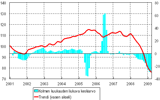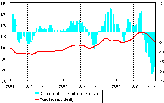 Lähde: Teollisuustuotannon volyymi-indeksi 2009, maaliskuu. Tilastokeskus