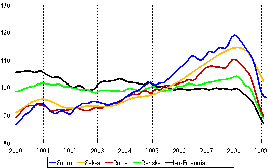Teollisuustuotannon trendi on niin Suomessa kuin muissakin Suomen kannalta tärkeissä vientimaissa voimakkaassa laskussa. Suomessa teollisuustuotannon huippu saavutettiin vuoden 2008 alussa ja siitä se on tullut varsin jyrkästi alas. Samanlainen kehitys on myös Suomen viennin kannalta tärkeissä EU-maissa.
