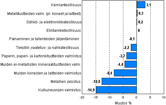 Teollisuustuotannon kausitasoitettu muutosprosentti maaliskuu
