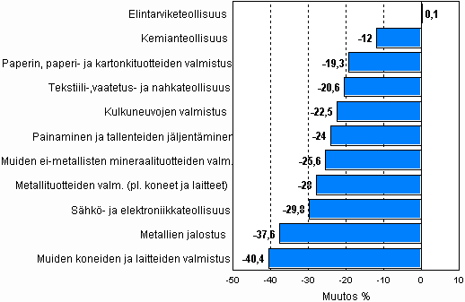 Teollisuustuotannon työpäiväkorjattu muutosprosentti elokuu 2008 / elokuu 2009, TOL 2008