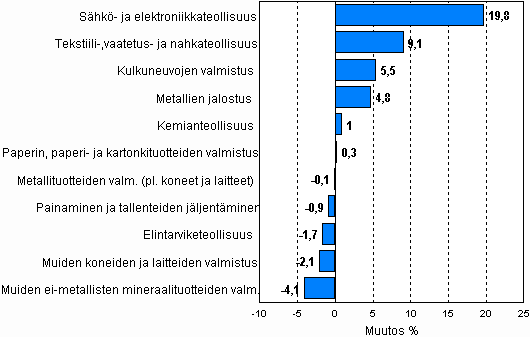Teollisuustuotannon kausitasoitettu muutosprosentti marraskuu 2009 / joulukuu 2009, TOL 2008