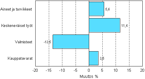 Teollisuuden varastojen muutos, varastotyypeittäin, 2005/I - 2005/II, %