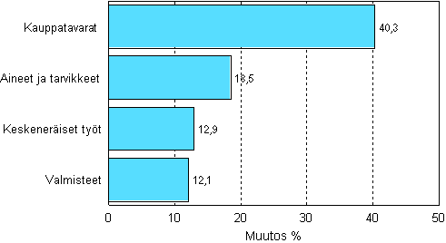 Teollisuuden varastojen muutos, varastotyypeittäin, 2006/III - 2007/III, %