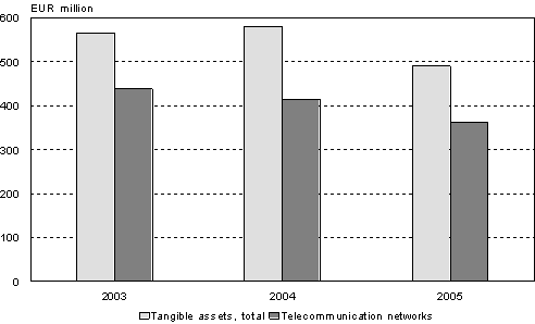 Telecommunications, Finances: Investments of telecommunications operators in tangible assets and telecommunication networks in 2003-2005, EUR million