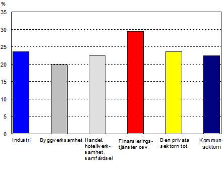 Kostnaden per arbetad timme var i genomsnitt 23,6 procent högre år 2005 än år 2000 inom den privata sektorn. Kostnaderna ökade mest inom finansiering och företagstjänster, dvs. 29,4 procent, och minst inom byggverksamhet, dvs. 19,9 procent. Inom den kommunala sektorn steg priset på arbetad timme med 23,3 procent under motsvarande period.