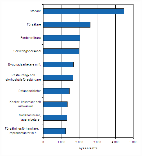 De vanligaste yrkena bland personer med utländsk bakgrund var år 2006 städerskor och försäljare
