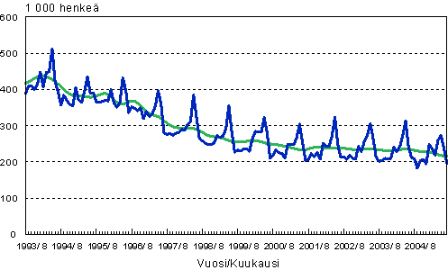 Työttömät, trendi ja tasoittamaton sarja