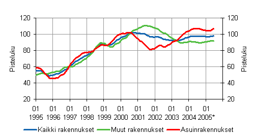- Uudisrakentamisen volyymi-indeksi 2000=100 (2.9.2005)