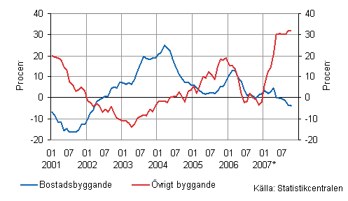 Enligt Statistikcentralens preliminära uppgifter steg volymindexet för nybyggnad i oktober med 12,4 procent jämfört med oktober året innan.