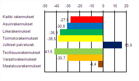 Liikerakentamisen volyymi supistui kuluvan vuoden touko-heinäkuussa 37 prosenttia viime vuoden vastaavaan aikaan verrattuna. Myös toimistorakentamisen ja teollisuusrakentamisen volyymit supistuivat kumpikin lähes 40 prosenttia.
