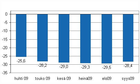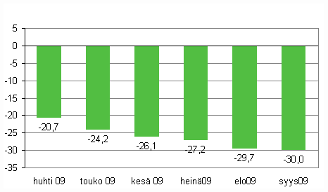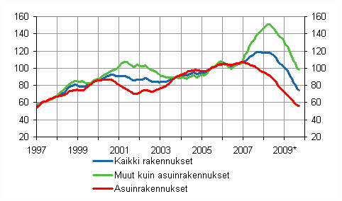 Tammi-syyskuussa 2009 rakennuslupia myönnettiin kaikkiaan 29 miljoonan kuutiometrin edestä, mikä on neljänneksen vähemmän kuin viime vuoden vastaavana aikana. Kuutiomäärät vähenivät kaikissa rakennustyypeissä lukuun ottamatta maatalousrakennuksia.