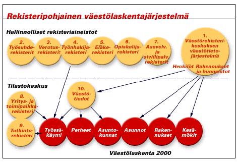 Rekisteripohjaisessa väestölaskennassa käytetään noin kolmenkymmenen hallinnollisen ja tilastollisen rekisterin tietoja.