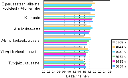 Biologisten lasten määrä ikäryhmittäin naista kohden eri koulutustasoilla 2004