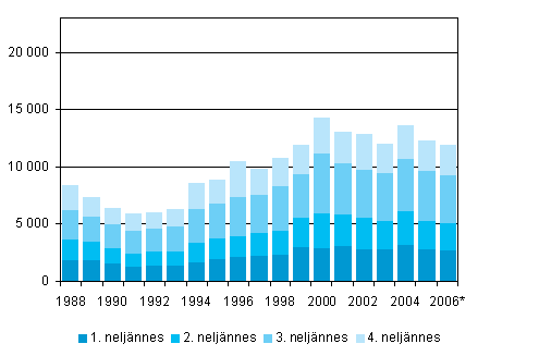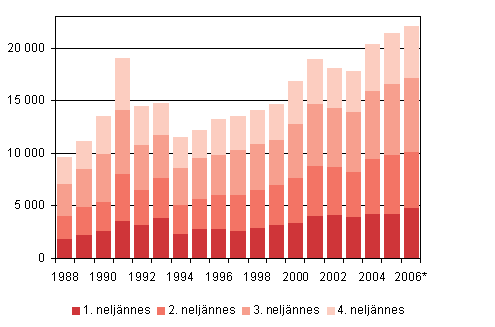 Maastamuutto neljännesvuosittain 1988 - 2006, 4. neljännes 2006