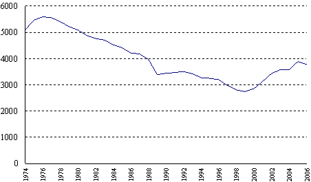 Genomsnittligt antal fångar åren 1974-2006