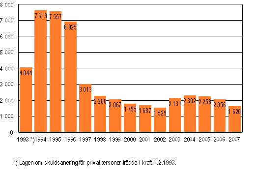 Källa: Skuldsaneringar 2007, 2:a kvartalet. Statistikcentralen